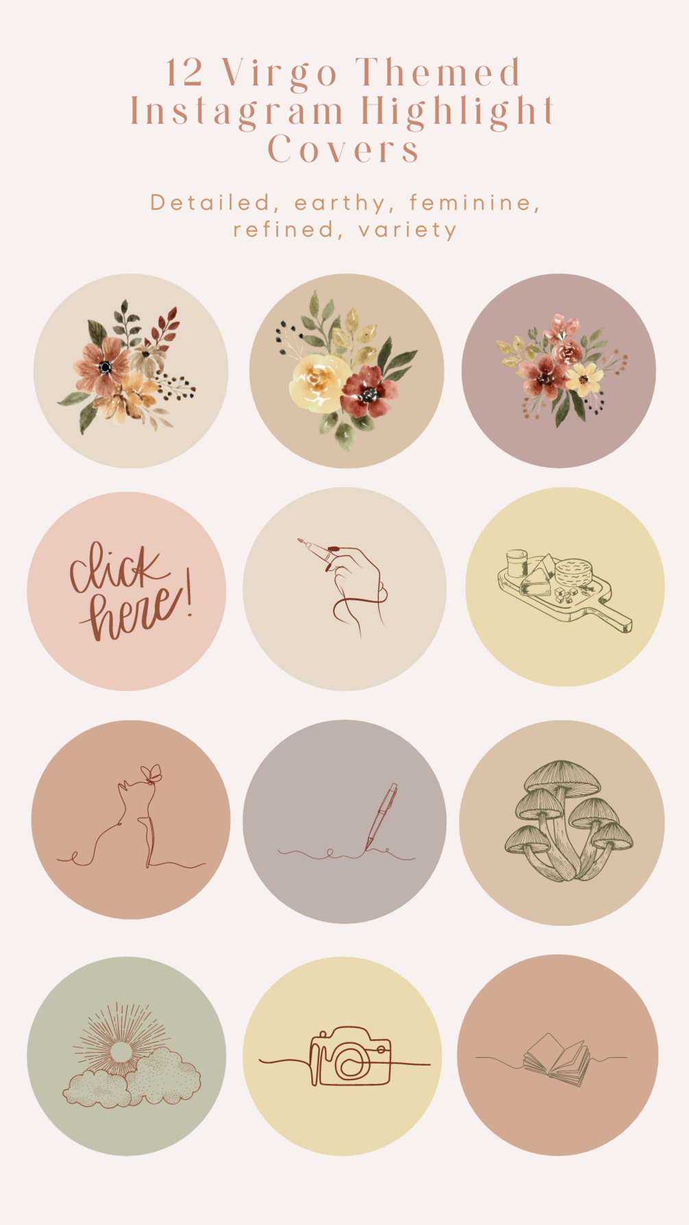 Virgo Zodiac Themed Instagram Highlight Covers Canva Tempalte